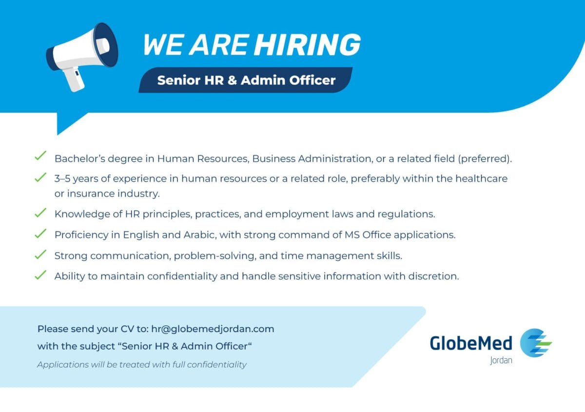 GlobeMed الأردن تعلن عن وظيفة Senior HR & Admin Officer