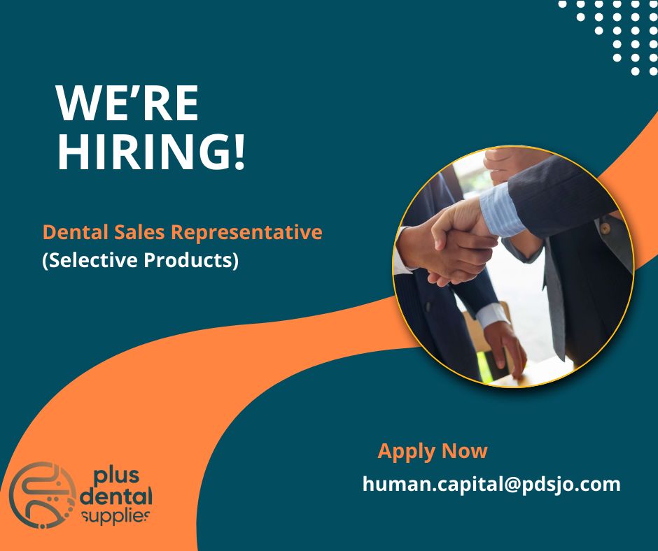 Plus+ Dental Supplies تعلن عن حاجتها إلى مندوب مبيعات مستلزمات طبية للأسنان (Selective Products) للعمل في عمّان – الأردن ضمن دور ميداني نشط يعتمد على بناء العلاقات وتحقيق النتائج.
