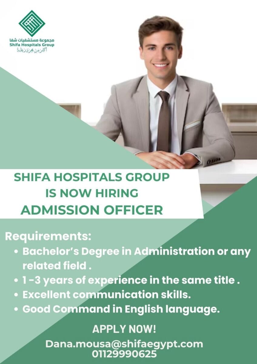 تُعد وظيفة Admission Officer من أهم الوظائف الإدارية في المستشفيات، خاصة داخل المجموعات الطبية الكبرى مثل مستشفيات شفا، حيث تلعب دورًا أساسيًا في تنظيم دخول المرضى وتحسين تجربة الخدمة الصحية.