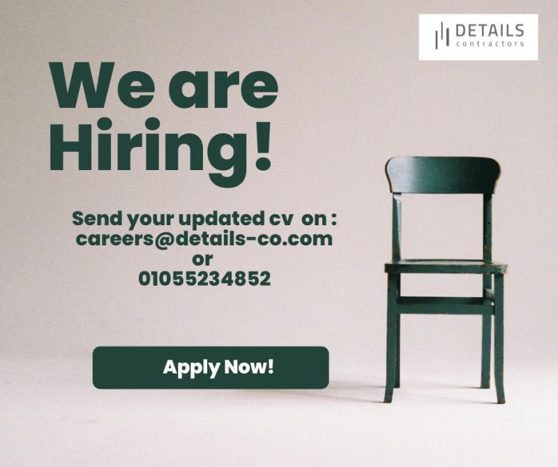 شركة Details Contractors تعلن عن فرص عمل متاحة الآن وتدعو الكفاءات الجادة للتقديم الفوري.