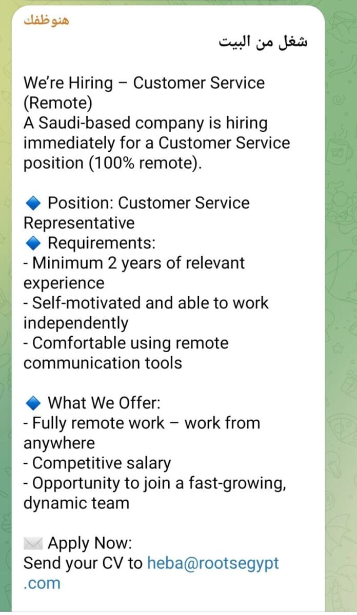 هذه الفرصة مثالية لمن يبحث عن وظيفة Customer Service من المنزل أو شغل أونلاين ثابت مع شركة خارجية.