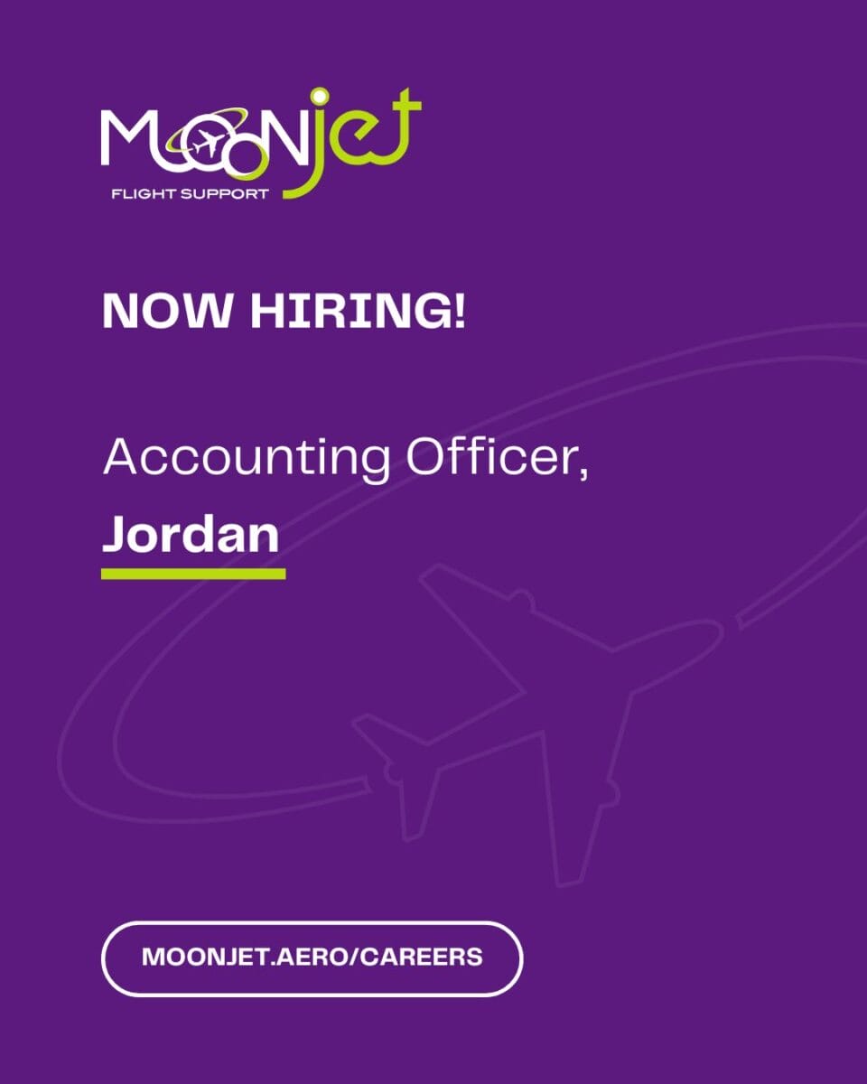 تعلن شركة MoonJet Flight Support، إحدى الشركات العالمية المتخصصة في خدمات الطيران، عن توسّع فريقها الإقليمي وحاجتها لتعيين موظف محاسبة للعمل في مكتبها في عمان – الأردن.