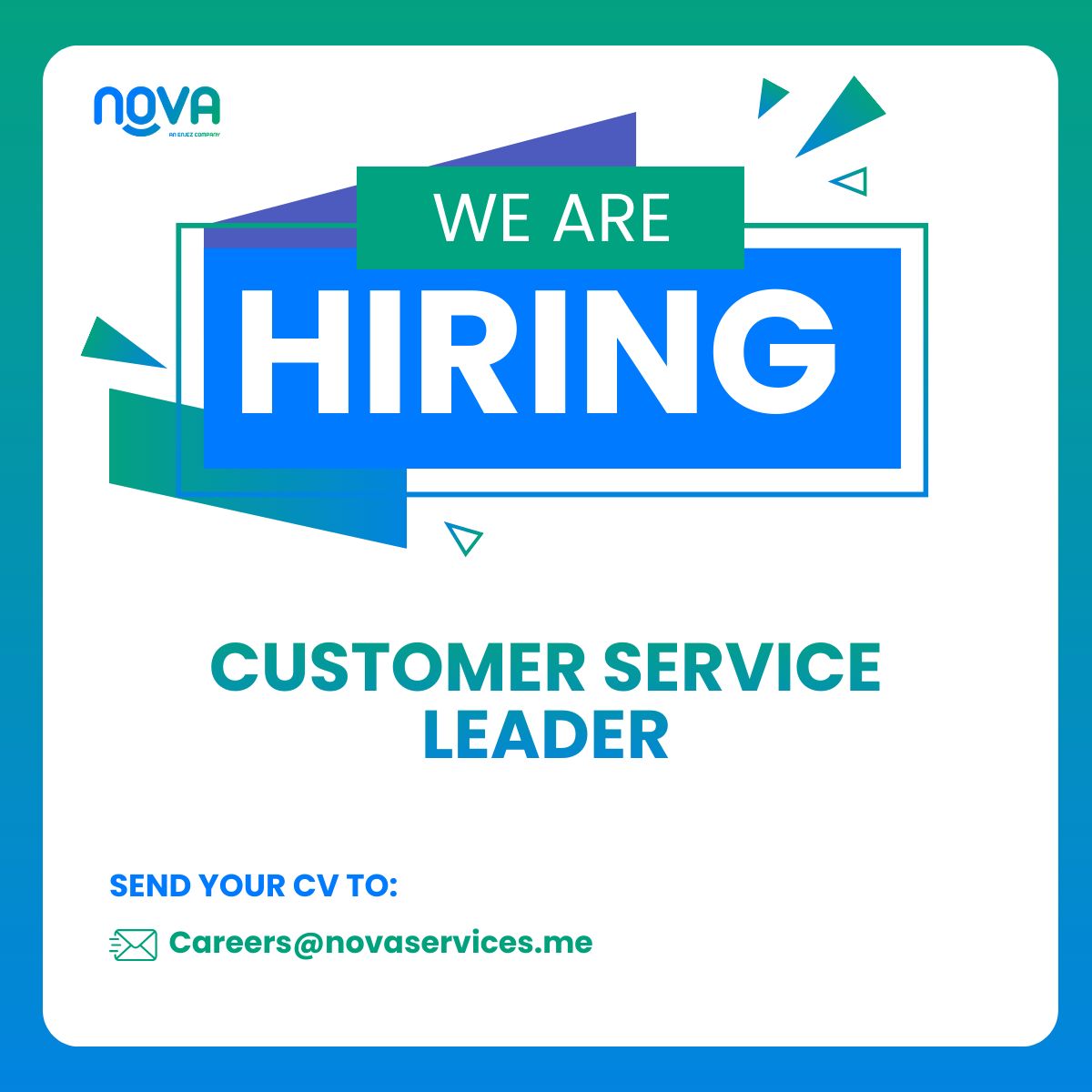 📌 شركة Nova Services تبحث عن Customer Service (CS) Leader للانضمام لفريقها الرائع!