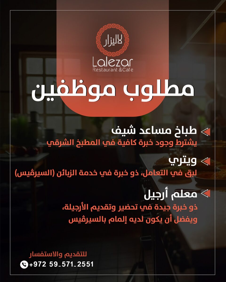 📢 فرصة عمل مميزة في مطعم لاليزار – بيت جالا ✨