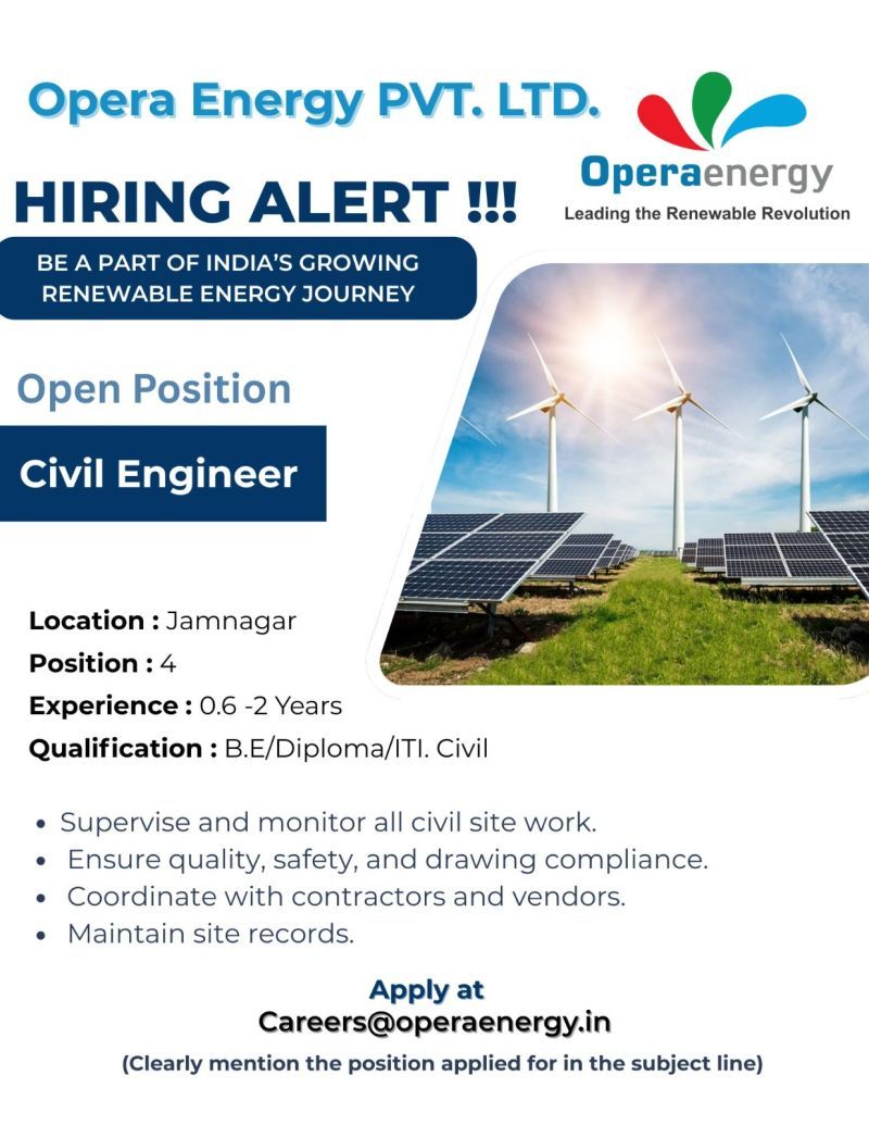 مطلوب Civil Engineer للعمل في مشاريع الطاقة المتجددة – Jamnagar