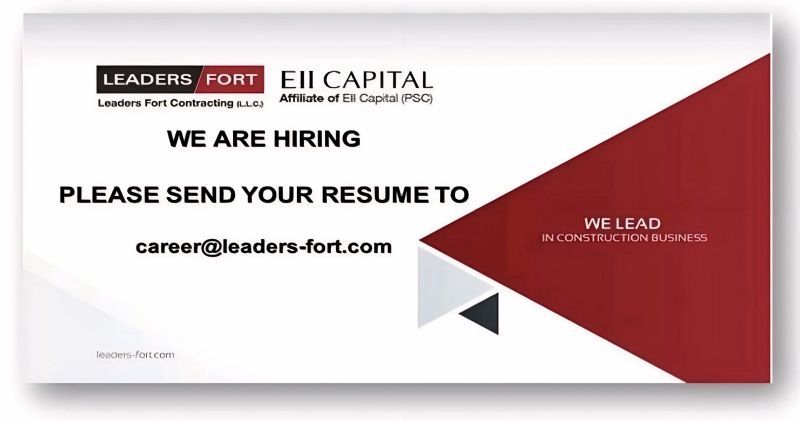 شركة Leaders Fort Contracting (إحدى شركات EII Capital) تفتح باب التوظيف لضم كفاءات متميزة وطموحة للانضمام إلى فريقها المتنامي.