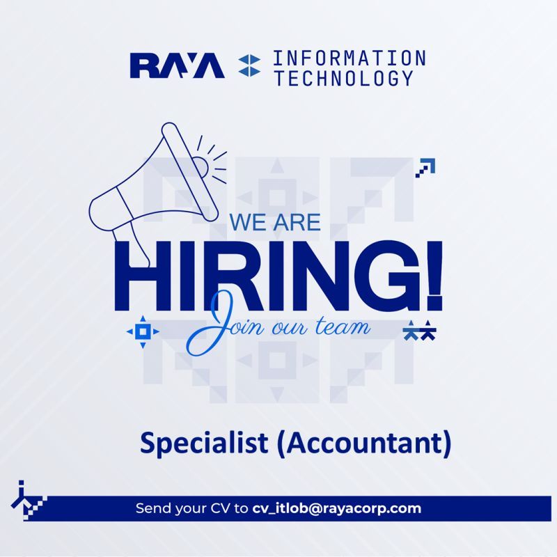 تعلن RAYA Information Technology عن فتح باب التوظيف لشغل وظيفة Specialist (Accountant) ضمن فريقها المحترف، في بيئة عمل تكنولوجية متطورة تتيح لك التطور والاستقرار الوظيفي.