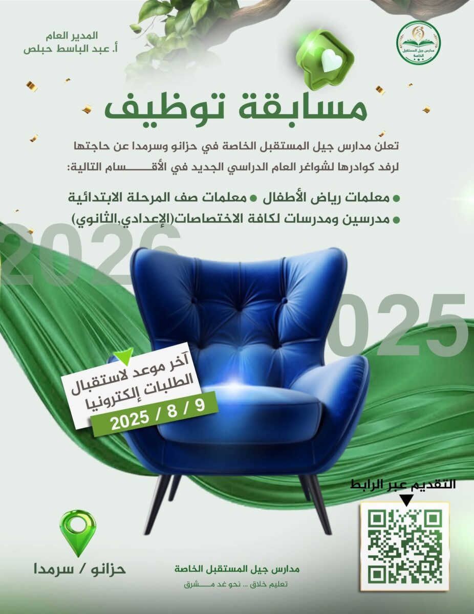 📢 فرصة عمل تربوية في مدارس جيل المستقبل – حزانو وسرمدا