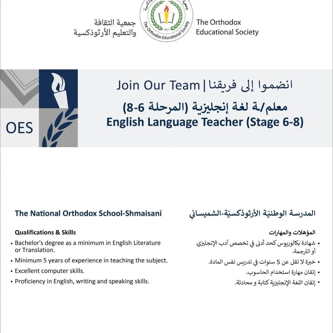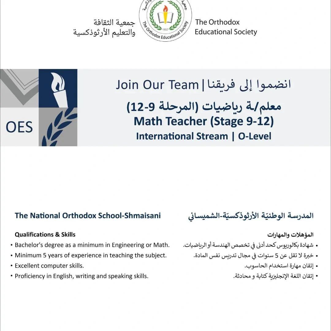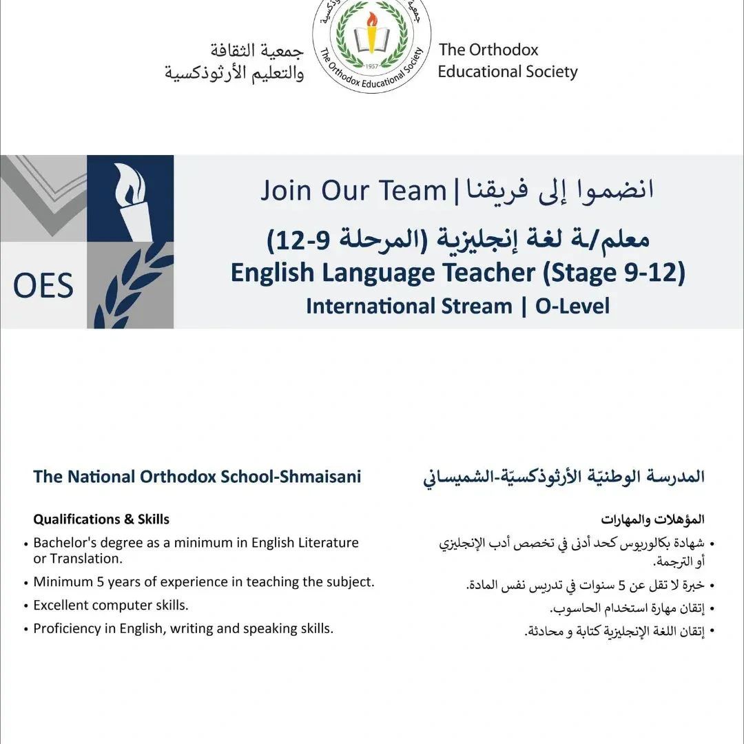 تعلن المدرسة الوطنية الأرثوذكسية – الشميساني عن فتح باب التوظيف للعام الدراسي القادم ضمن البرنامج الدولي (O-Level)، ونبحث عن معلمين ومعلمات ذوي كفاءة عالية وشغف حقيقي بالتعليم.