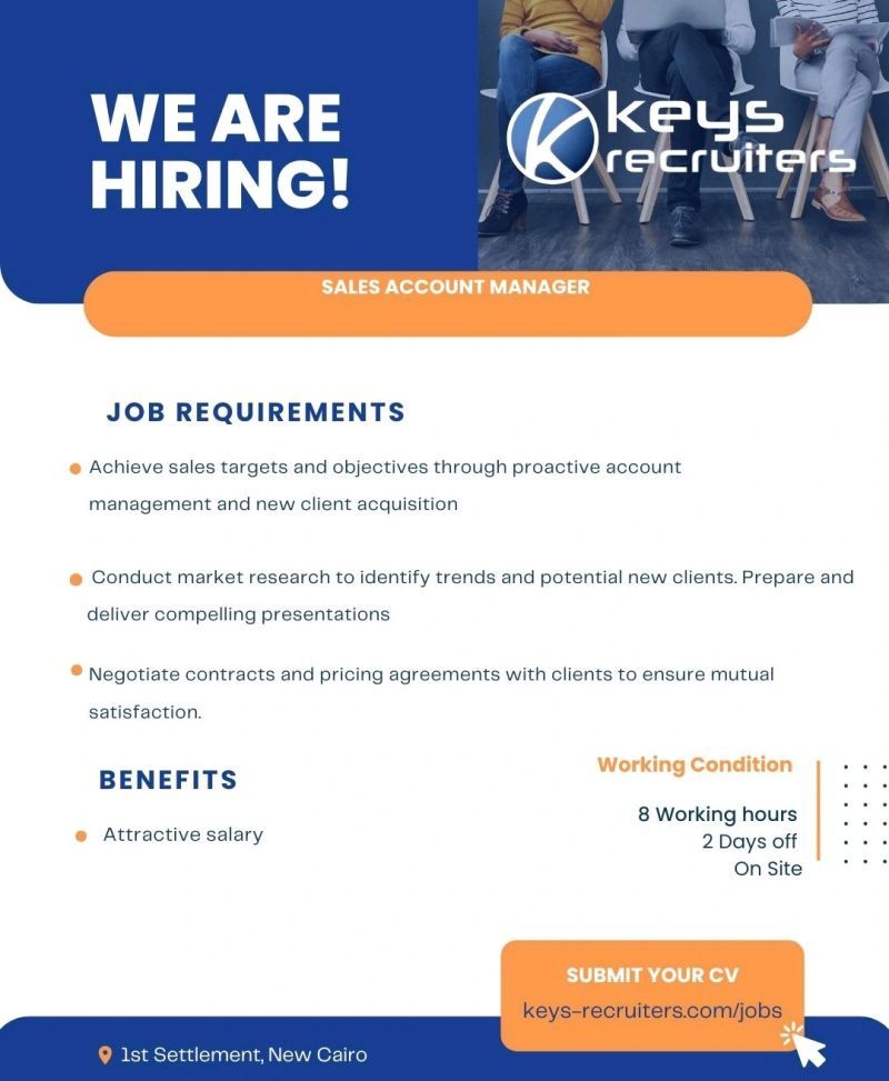 🚀 انضم الآن إلى فريق Keys Recruiters – نبحث عن Sales Account Manager طموح!