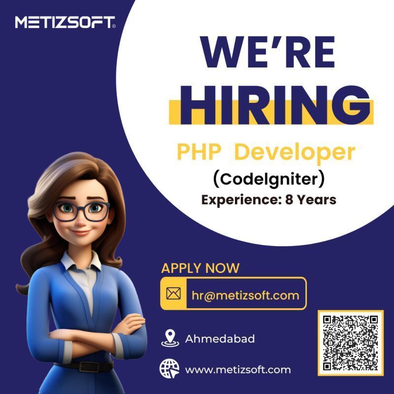 تعلن شركة Metizsoft عن فتح باب التوظيف لمنصب PHP Developer (CodeIgniter) بخبرة قوية لا تقل عن 8 سنوات.