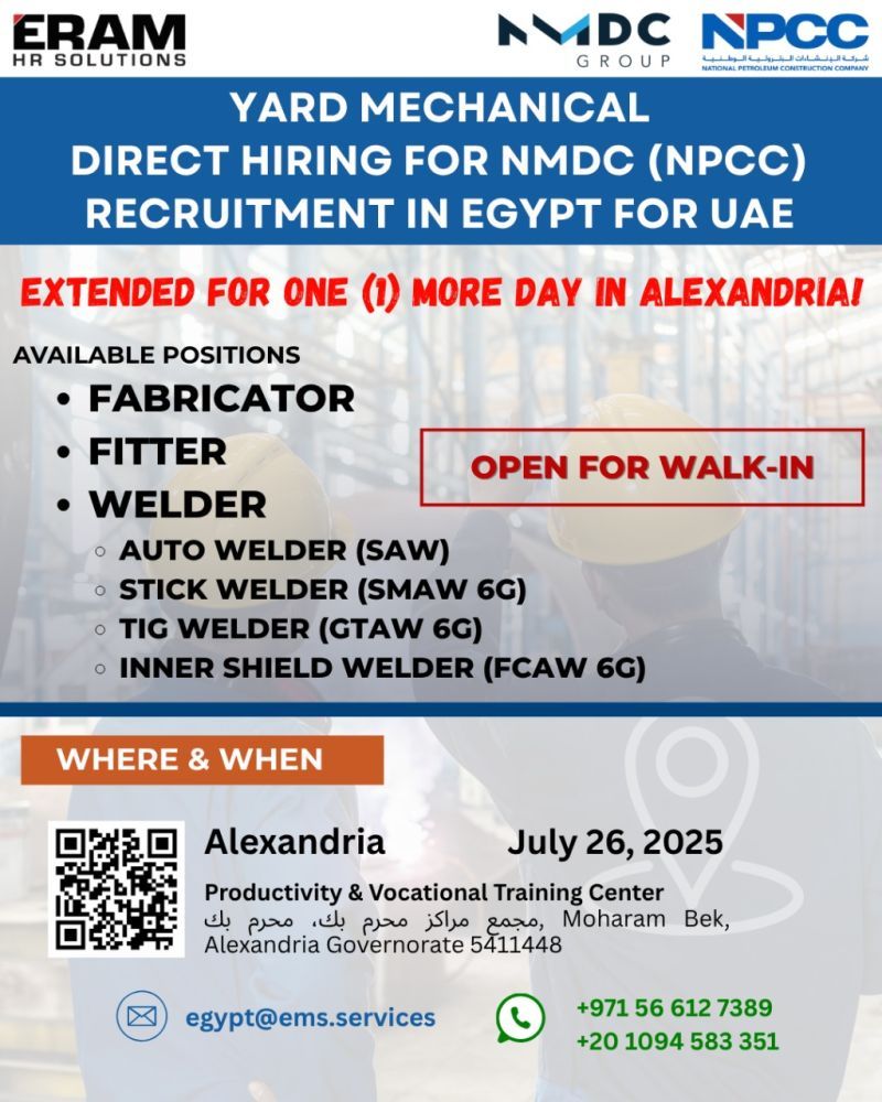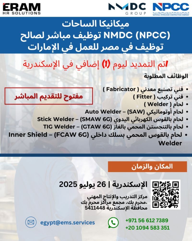 🛠️ 3. وظائف فنيين ولحامين – الإمارات عبر مصر – 2025