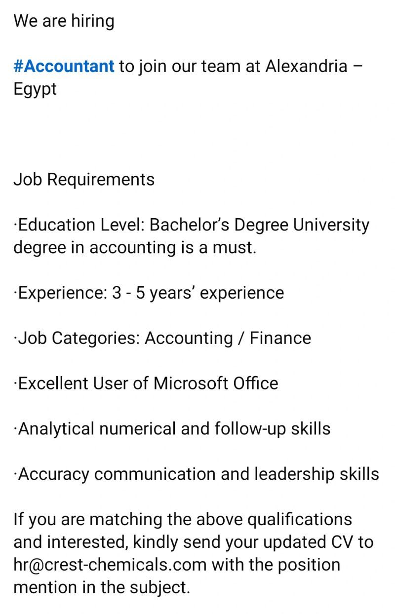 ✅ محاسب – الإسكندرية، مصر