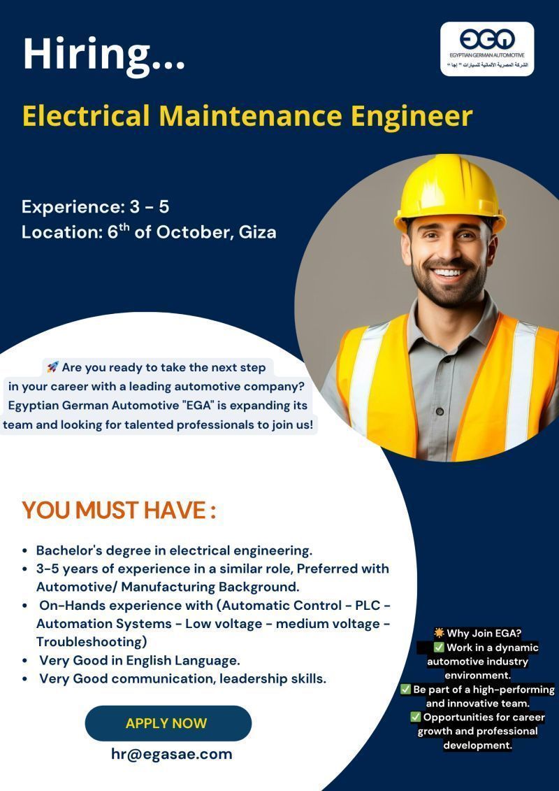 ✅ مهندس صيانة كهربائية – 6 أكتوبر، الجيزة