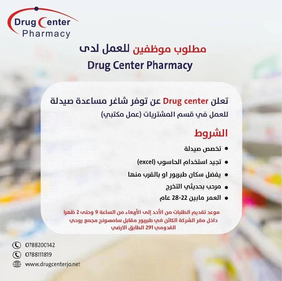 وظائف شاغرة في صيدليات Drug Center – صيدلاني ومساعدة صيدلة (تقديم فوري)