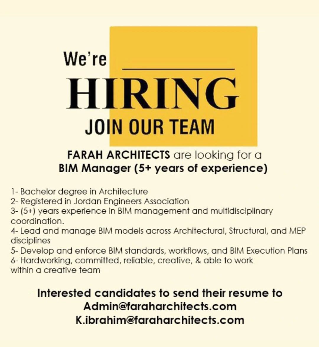 وظيفة BIM Manager في عمّان | Farah Architects – خبرة 5 سنوات