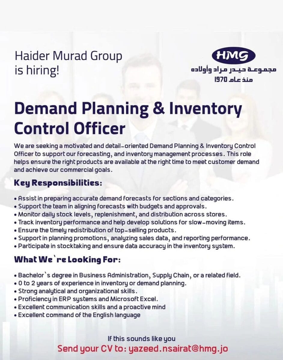 وظيفة شاغرة في الأردن – Demand Planning & Inventory Control Officer