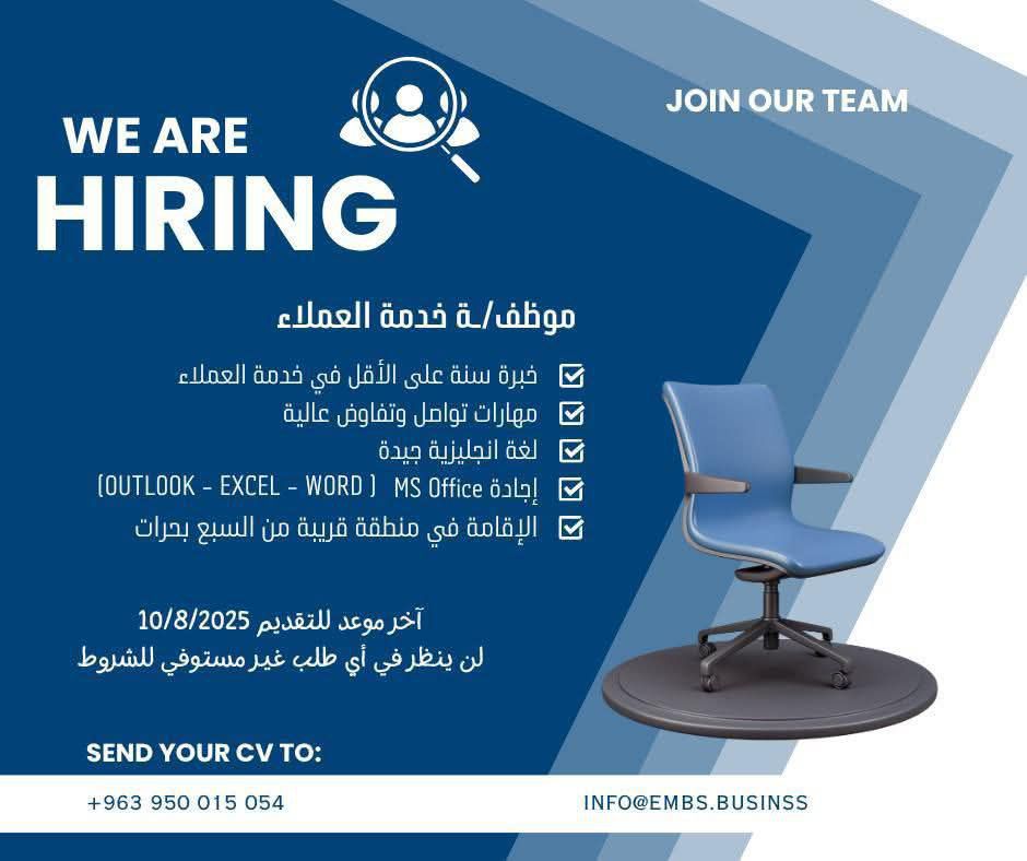 📢 إعلان شاغر وظيفي – رقم: EMBS-CS-25-05