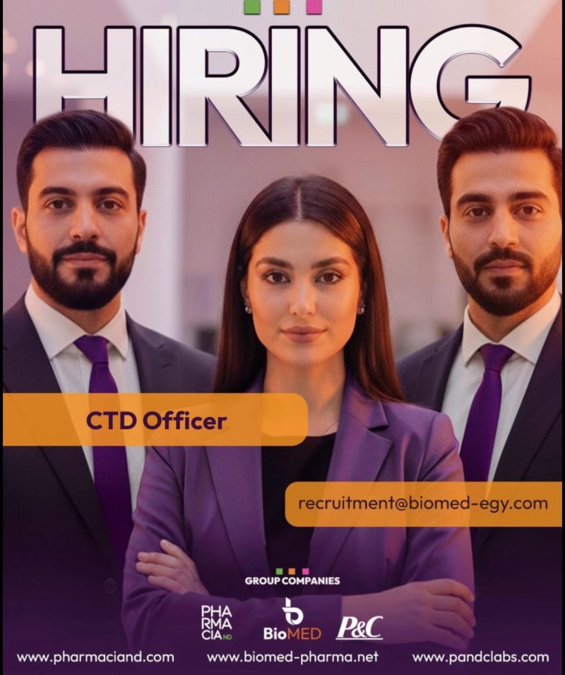 CTD Officer للعمل ضمن شركات المجموعة المتخصصة في الصناعات الدوائية.