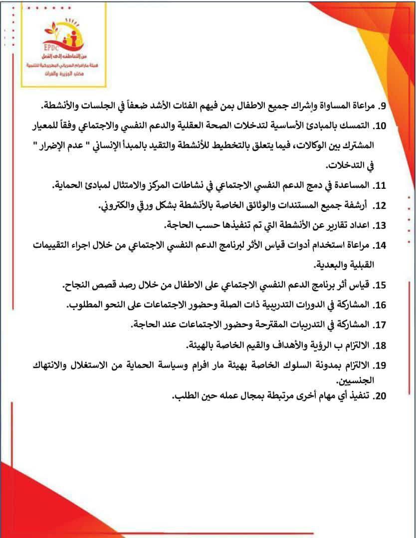 خبرة لا تقل عن سنتين في مجال الدعم النفسي الاجتماعي للأطفال.