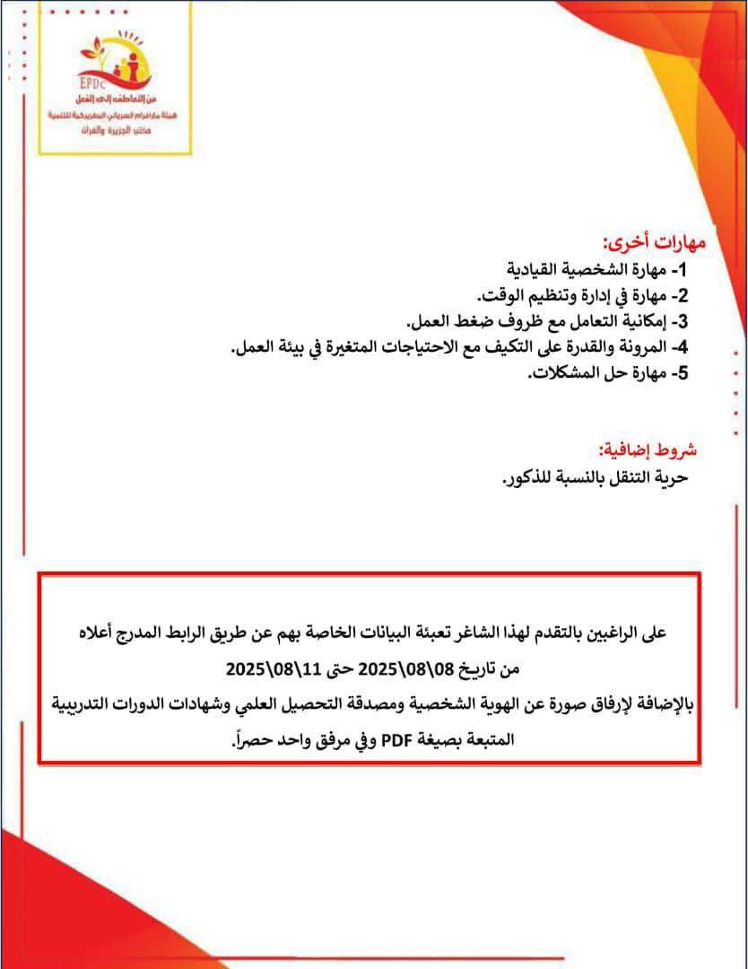 🗓 فترة التقديم: من 08/08/2025 حتى 11/08/2025