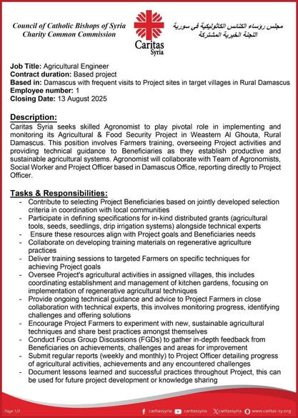 تُعلن هيئة مار أفرام السرياني للتنمية عن توفر شاغر وظيفي مميز للعمل في محافظة دير الزور ضمن قسم الحماية.
