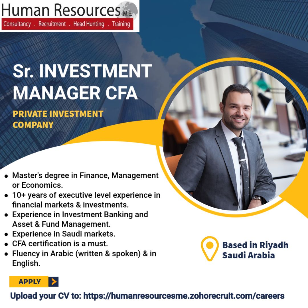 وظيفة مدير استثمار أول (CFA) في الرياض | شركة استثمار خاصة