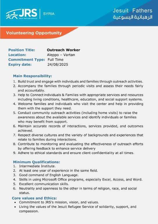 📌 إعلان وظيفة: عامل التوعية | حلب – ورطان