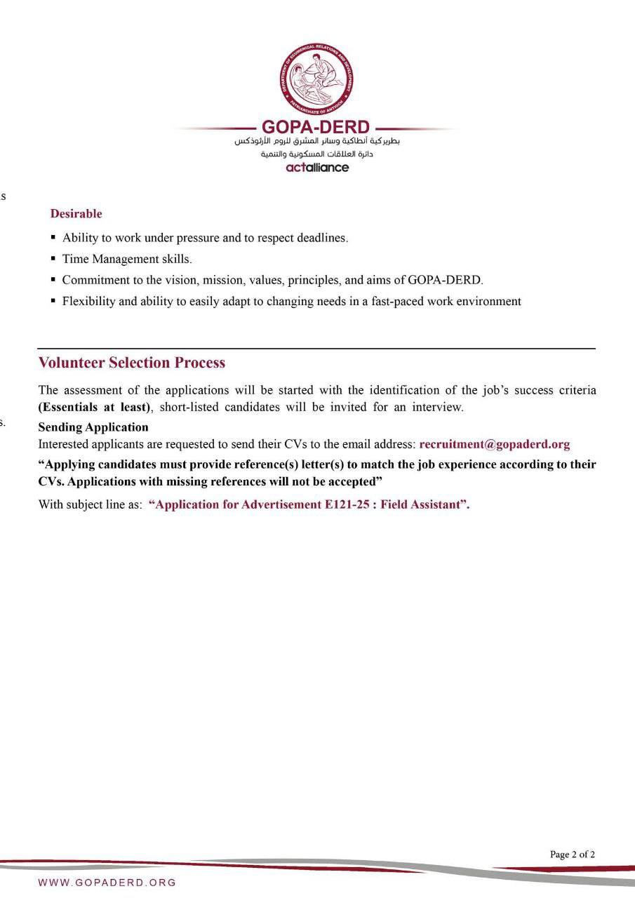 إعلان تطوعي – مساعد ميداني في اللاذقية 2025