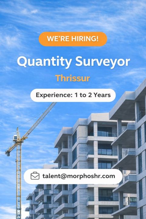 🚧 نعلن الآن عن توظيف Quantity Surveyor بخبرة من 1 إلى 2 سنة للعمل في Thrissur ضمن بيئة عمل احترافية تركز على الجودة والدقة في التنفيذ.