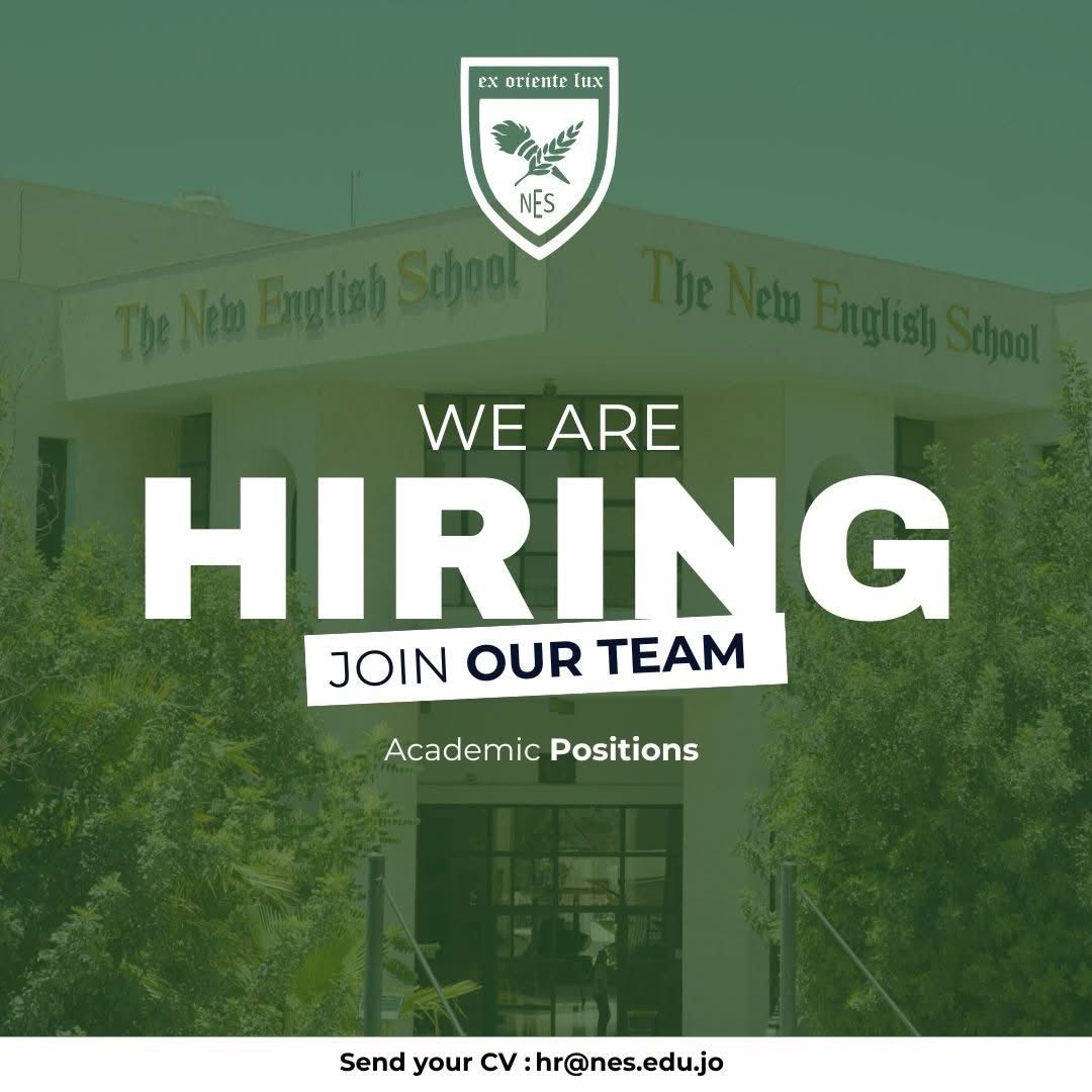 تفتح مدرسة نيو إنجلش (New English School) باب التوظيف الأكاديمي للعام الدراسي 2026/2027، وتدعو المعلمين والمعلمات المؤهلين، الشغوفين بالتعليم، إلى الانضمام لفريقها الأكاديمي المتنامي.