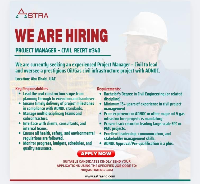 📌 1. وظيفة مدير مشروع – هندسة مدنية – أبوظبي