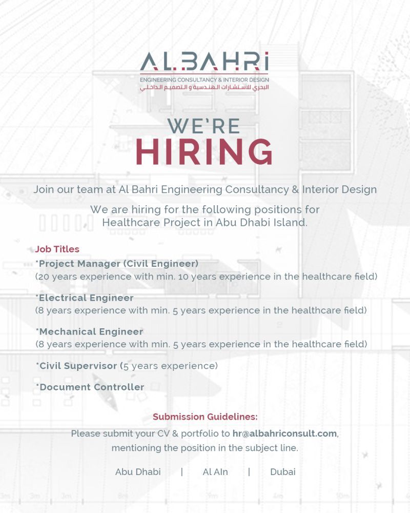 📌 3. وظائف هندسية بمشروع رعاية صحية – أبوظبي (شركة Al Bahri)