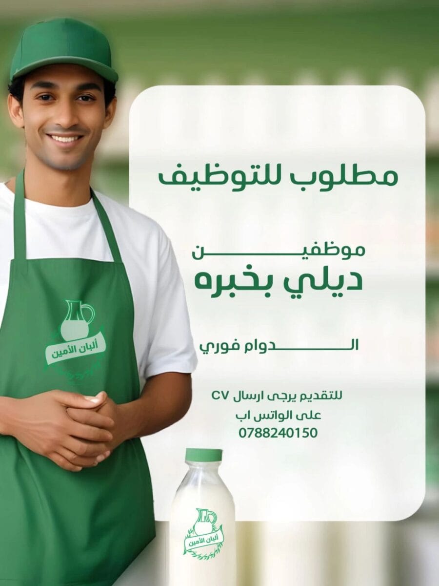 ألبان الأمين تعلن عن حاجتها إلى موظفين ديلي للعمل فورًا ضمن فريق منظّم واسم موثوق في السوق.
