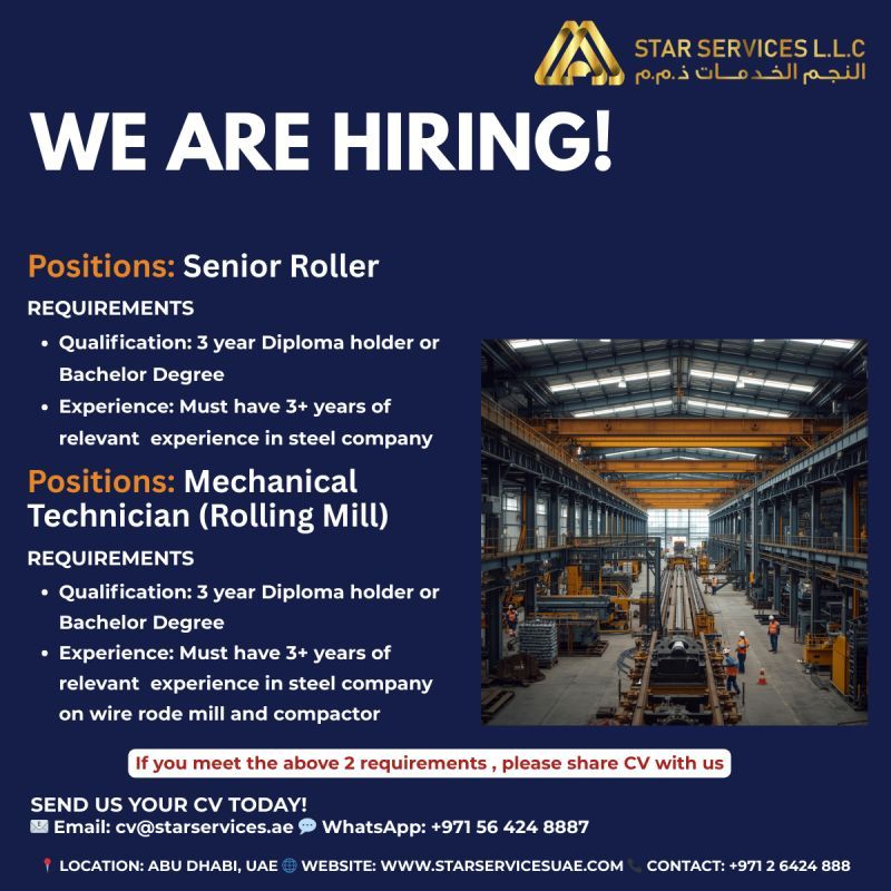 إذا كنت تبحث عن وظيفة في Rolling Mill أو مصانع steel ولديك الخبرة المطلوبة، فهذه فرصتك للتقديم الآن دون تأخير.