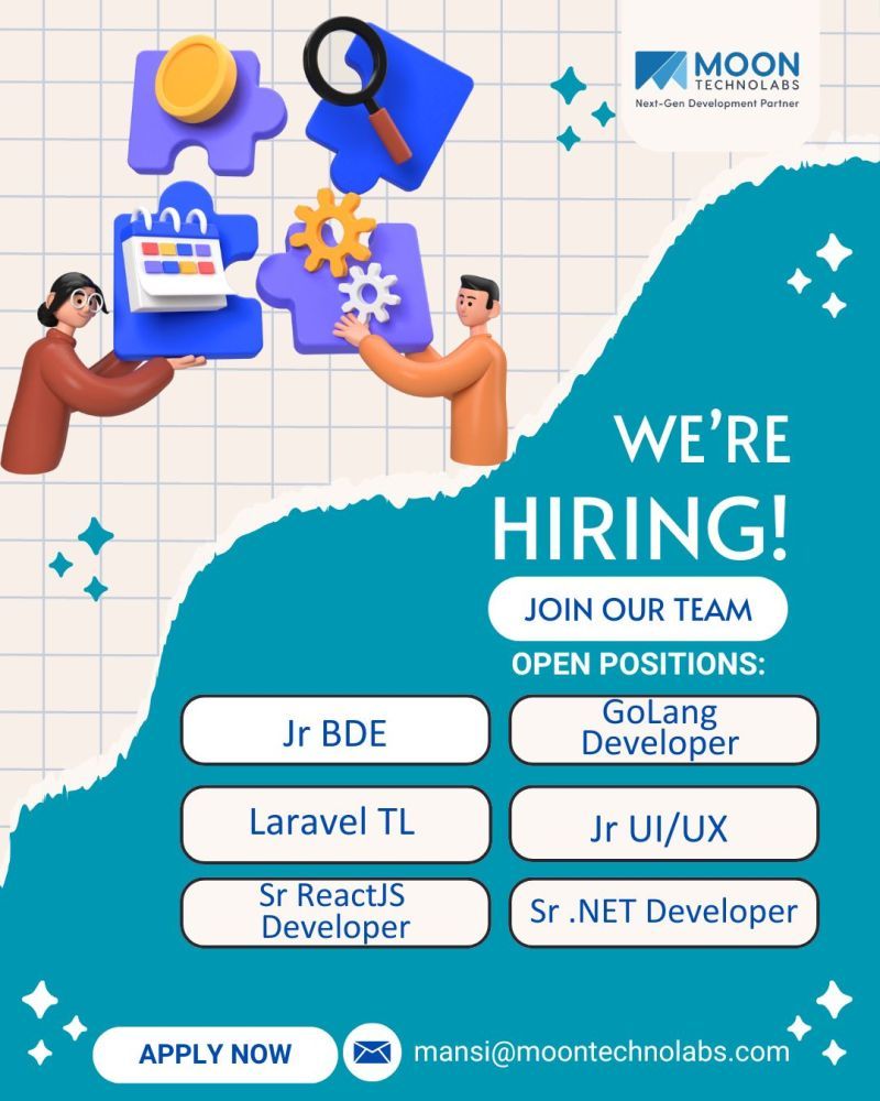 تعلن Moon Technolabs عن فتح باب التوظيف لعدة وظائف تقنية مميزة ضمن فريقها المتنامي.