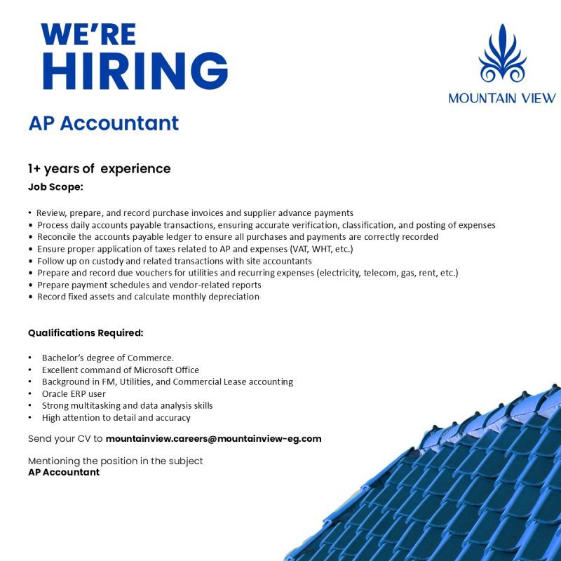 📢 Mountain View تعلن عن وظيفة AP Accountant