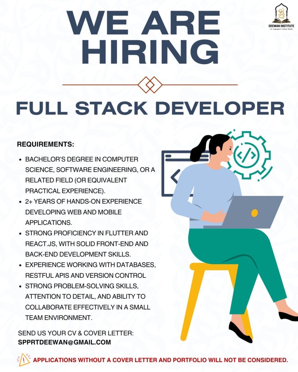فهذه فرصتك للانضمام إلى Deewan Institute for Language and Cultural Studies والعمل على تطبيقات ويب وموبايل تُستخدم فعليًا وتُحدث فرقًا.