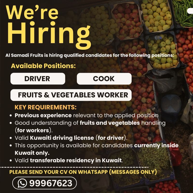 الوظائف متاحة للمقيمين داخل الكويت فقط وبإجراءات سريعة.