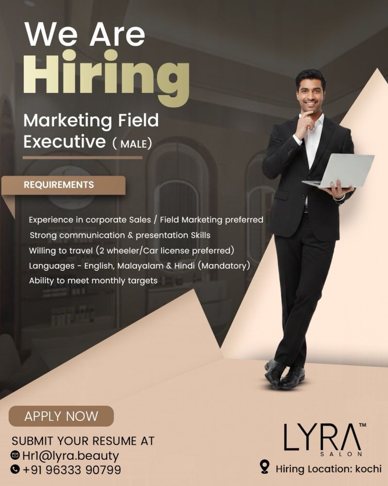 تعلن LYRA Salon عن حاجتها إلى تنفيذي تسويق ميداني (Marketing Field Executive) للانضمام فورًا والعمل ضمن بيئة ديناميكية تركز على النتائج والنمو السريع.