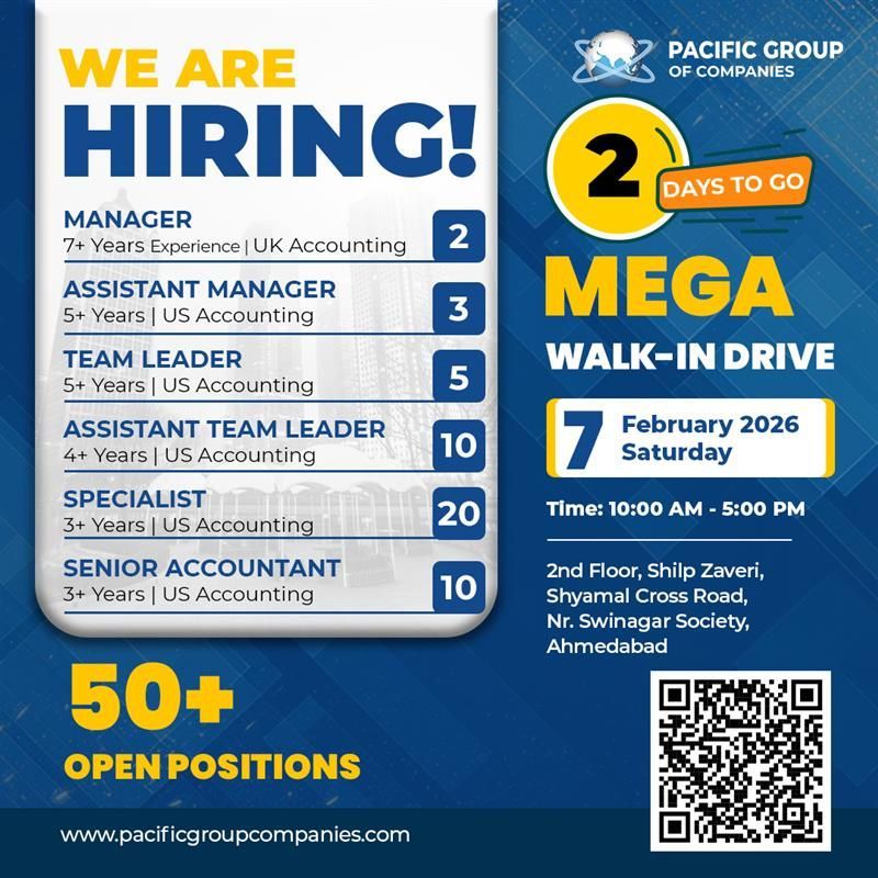 شركة Pacific Group of Companies تعلن عن Mega Walk-In Drive لتوظيف أكثر من 50 محاسبًا في تخصصات US & UK Accounting.