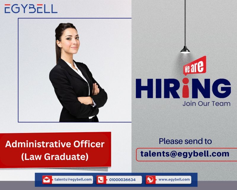 تُعلن شركة Egybell عن حاجتها إلى Administrative Officer (Law Graduate) للانضمام إلى فريقها الإداري، في بيئة عمل احترافية تتيح التطور واكتساب خبرة عملية قوية في المجال الإداري والقانوني.