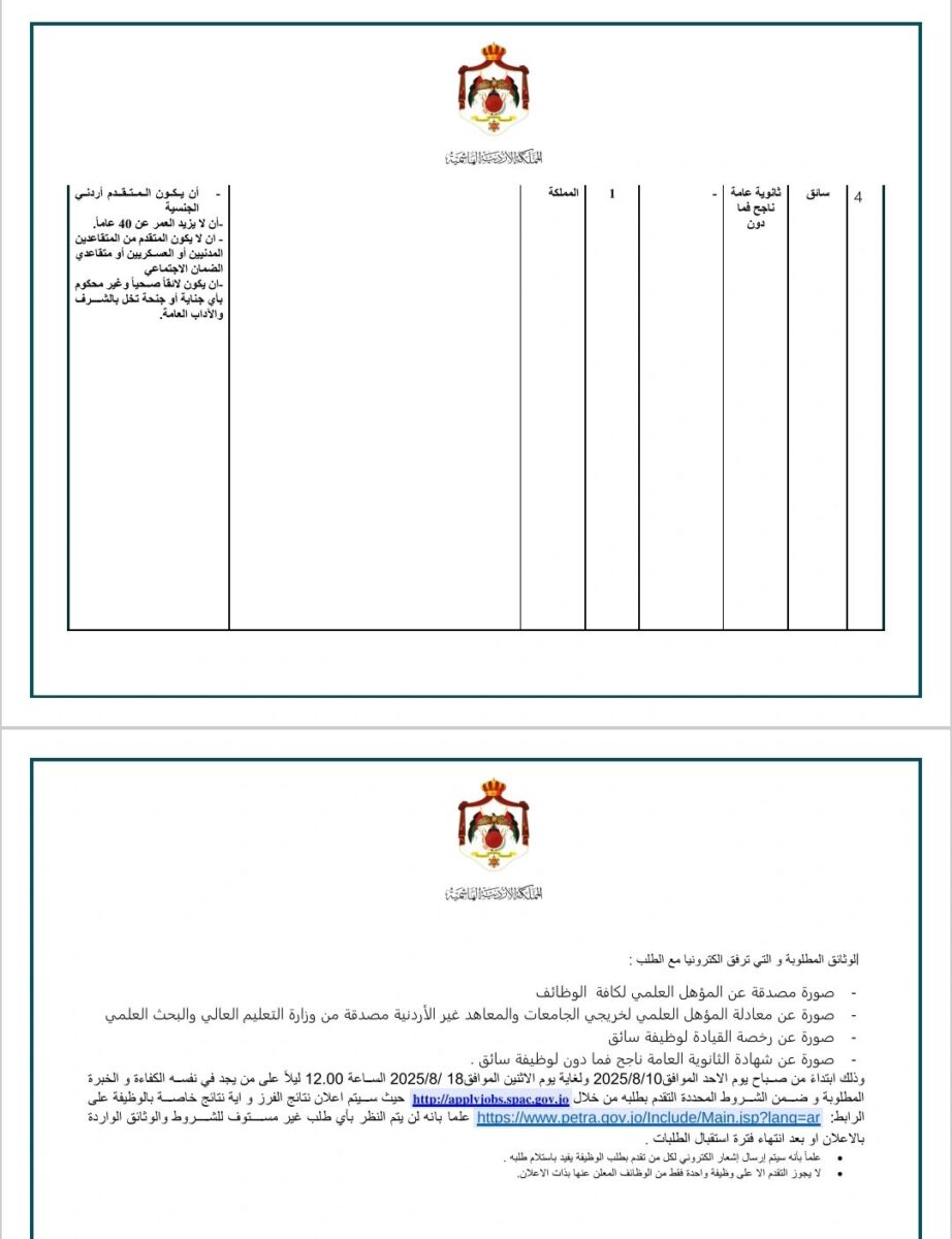 🟢 وظائف شاغرة في مؤسسات حكومية أردنية – أغسطس 2025