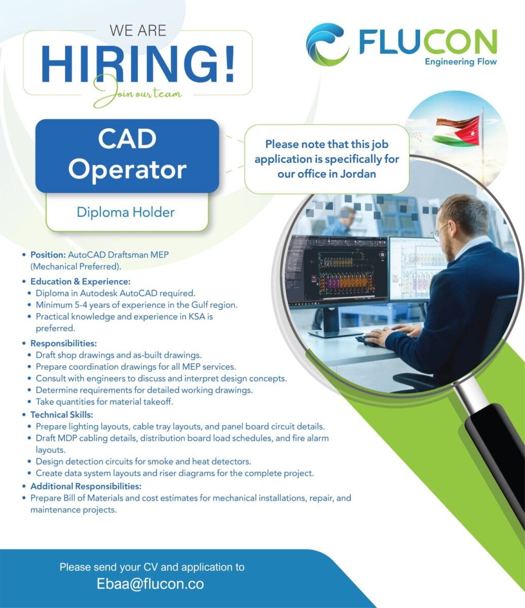 مطلوب فورًا CAD Operator في عمّان – شركة FLUCON 2026