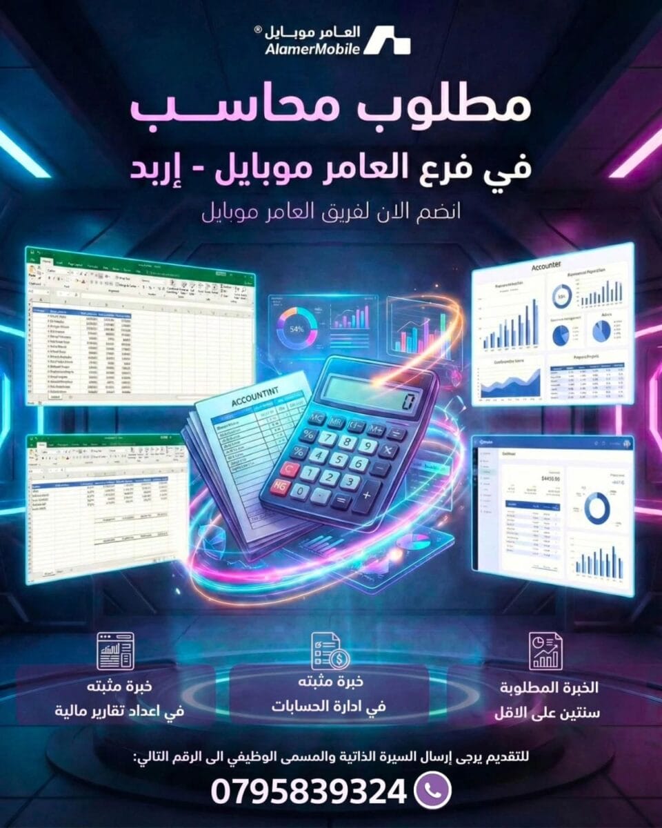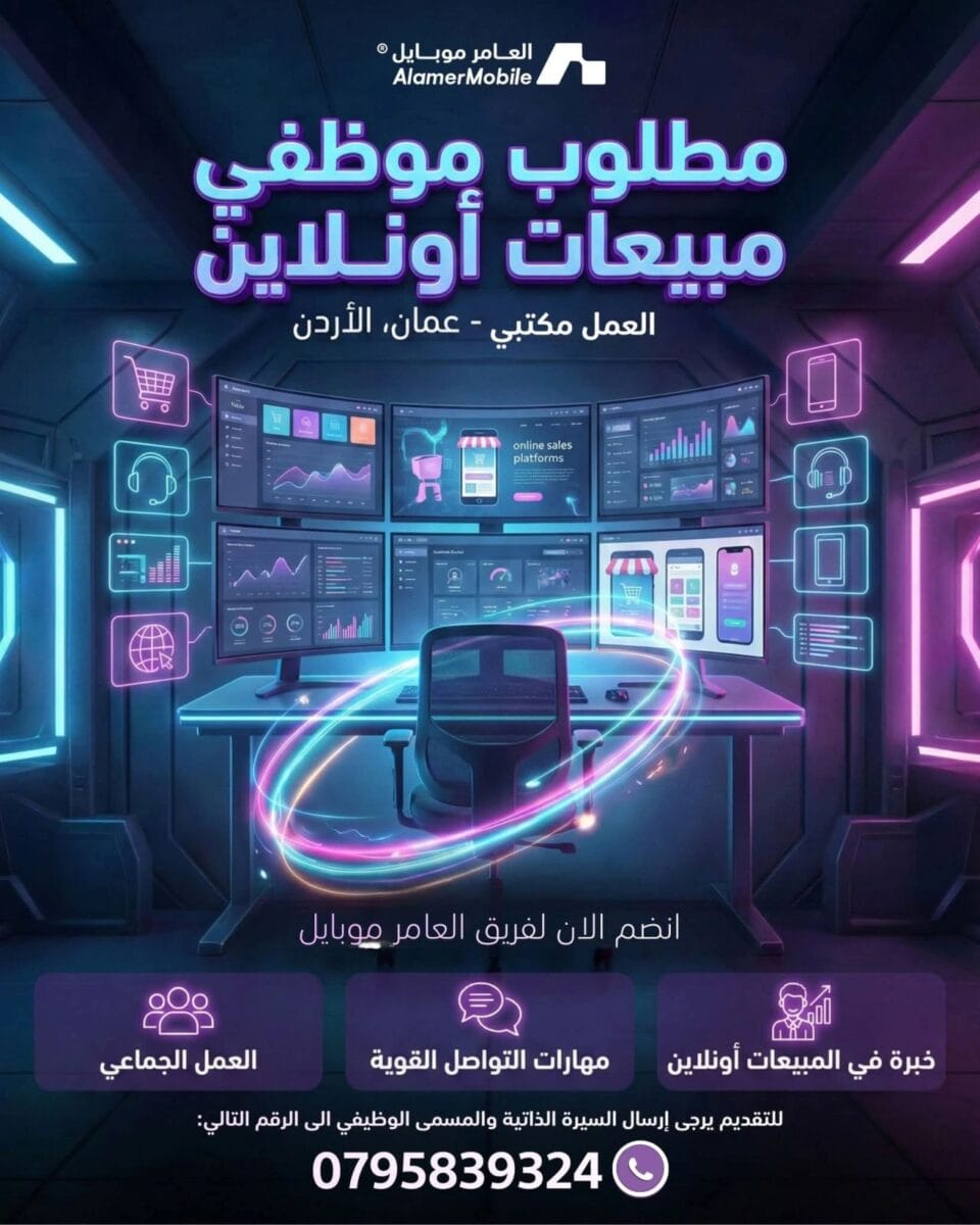 تعلن شركة العامر موبايل عن فتح باب التوظيف للعديد من الوظائف في الأردن، لتصبح جزءاً من فريق متنامٍ وبيئة عمل محفزة وداعمة، مع فرص حقيقية للتطور والنمو المهني.