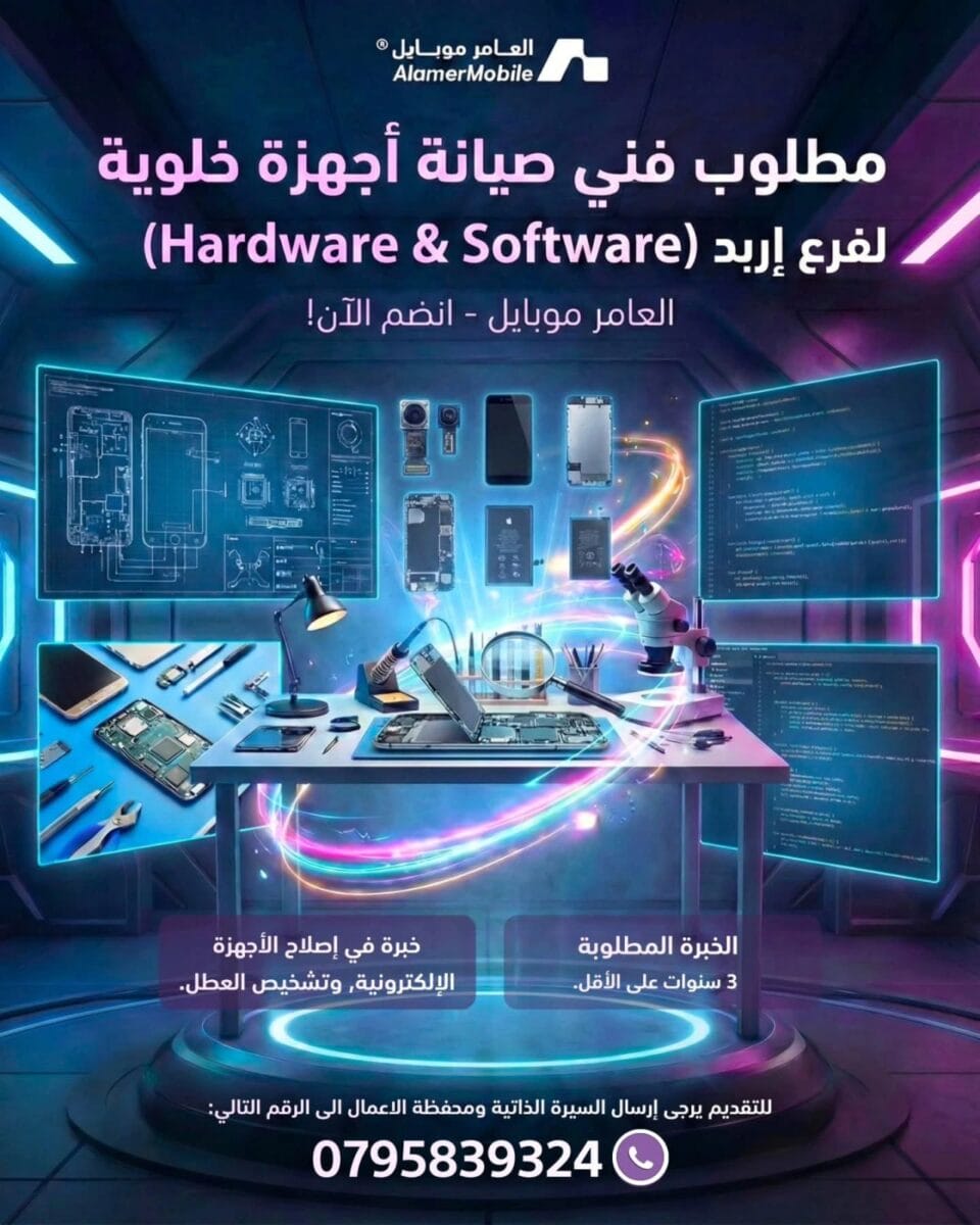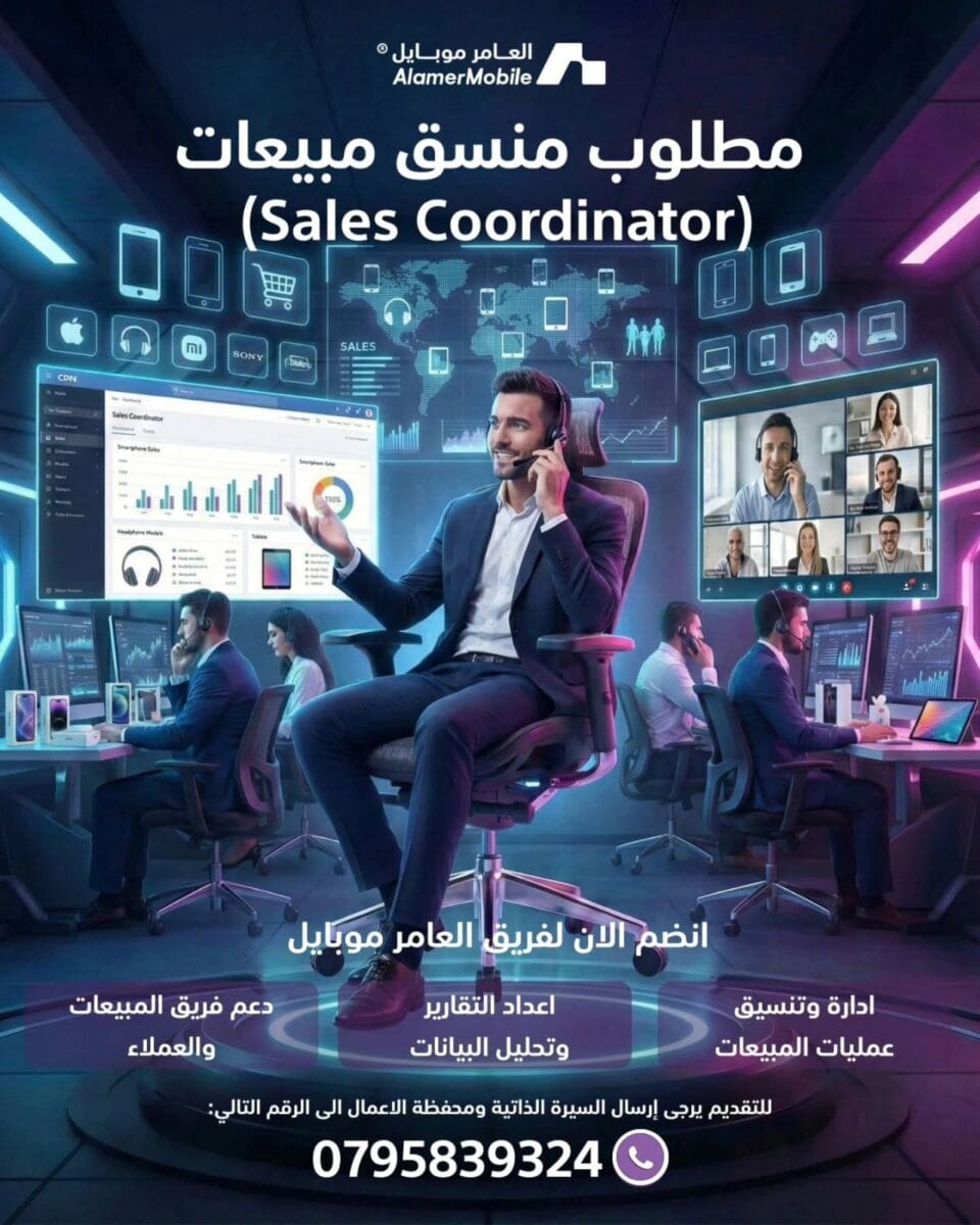 تعلن شركة العامر موبايل عن فتح باب التوظيف للعديد من الوظائف في الأردن، لتصبح جزءاً من فريق متنامٍ وبيئة عمل محفزة وداعمة، مع فرص حقيقية للتطور والنمو المهني.