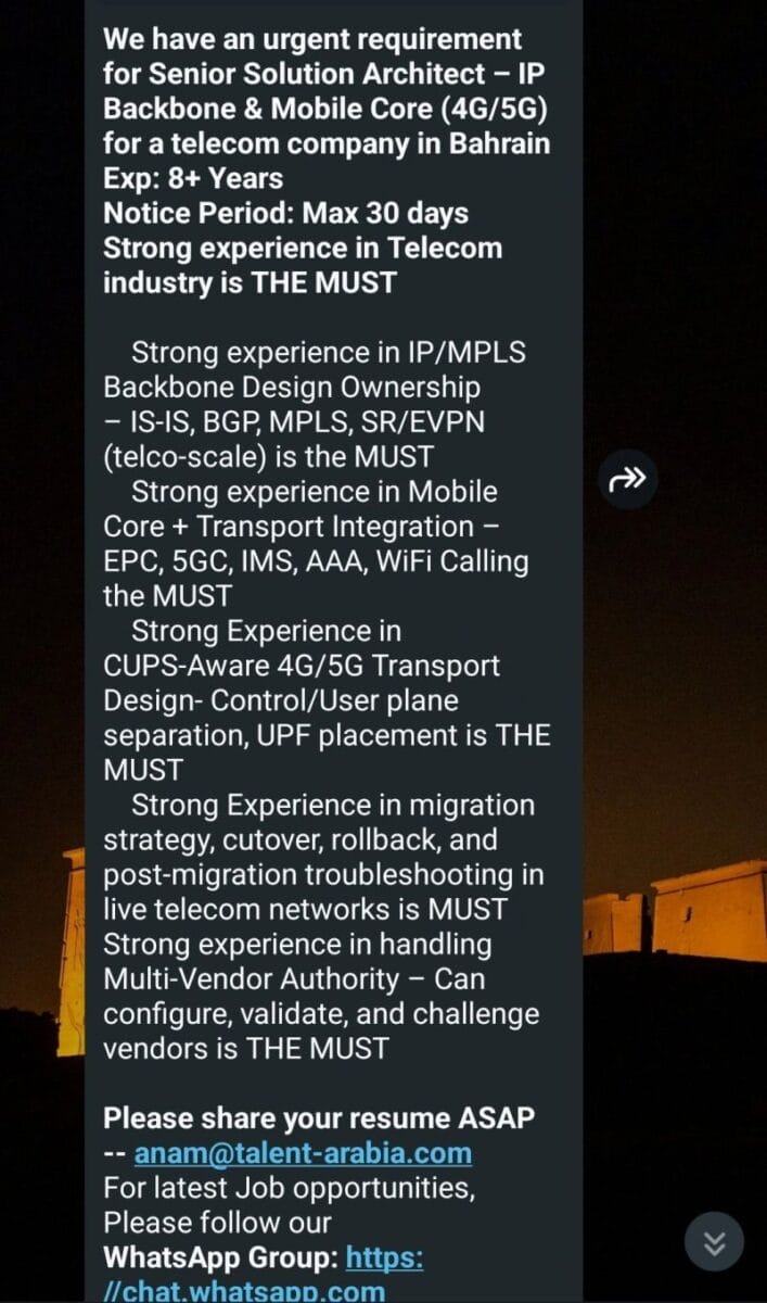 Senior Solution Architect – IP Backbone & Mobile Core (4G/5G)