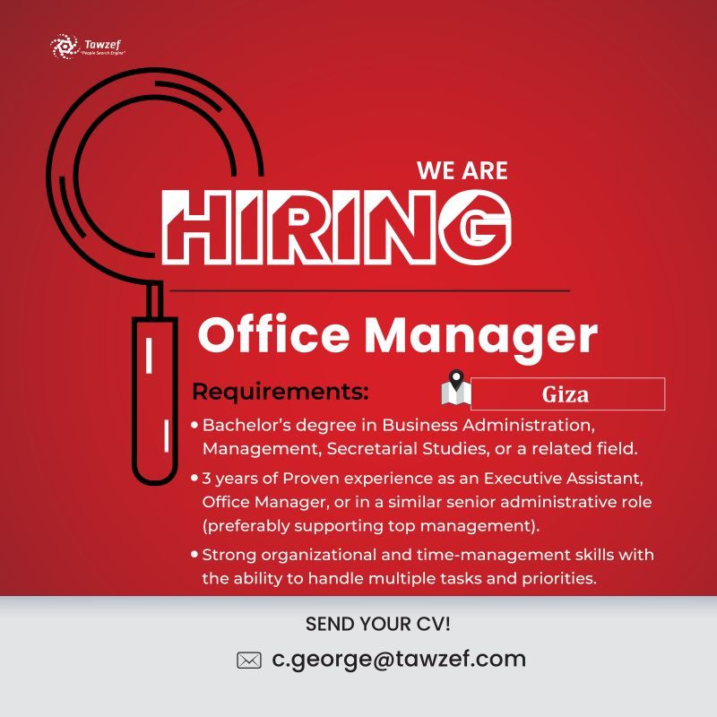 ⚡ اكتب في عنوان الرسالة: Office Manager – Giza