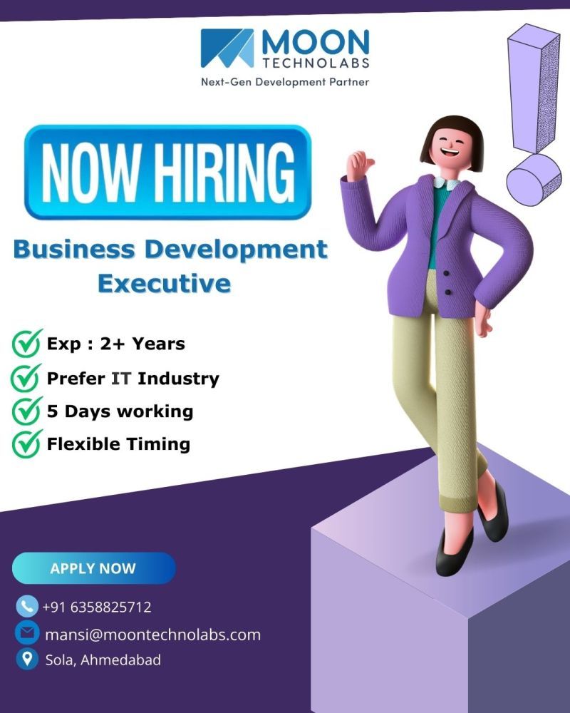 تعلن شركة Moon Technolabs عن فتح باب التوظيف لوظيفة تنفيذي تطوير أعمال (Business Development Executive) في مدينة أحمد آباد – الهند.