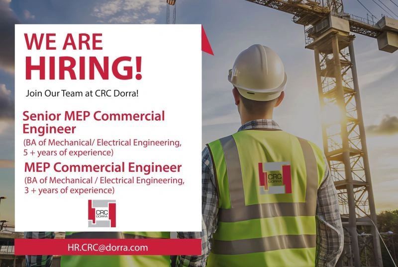 📢 CRC Dorra تعلن عن توظيف فوري لمهندسي MEP تجاري في دبي